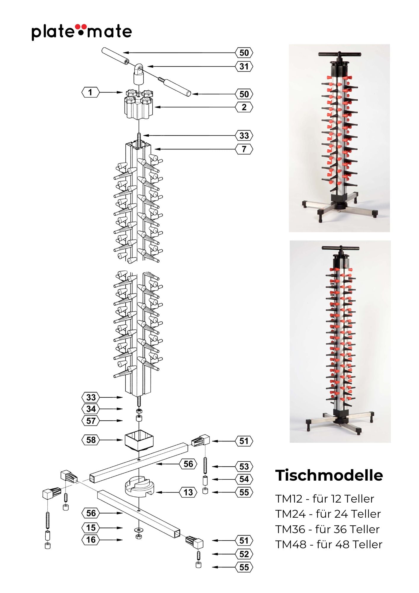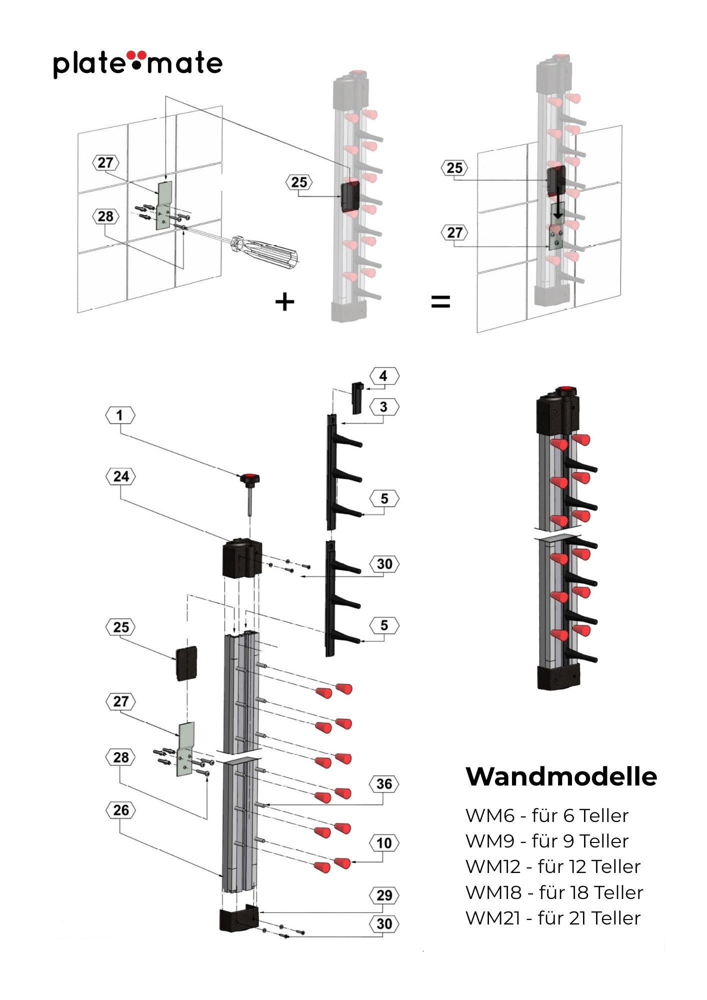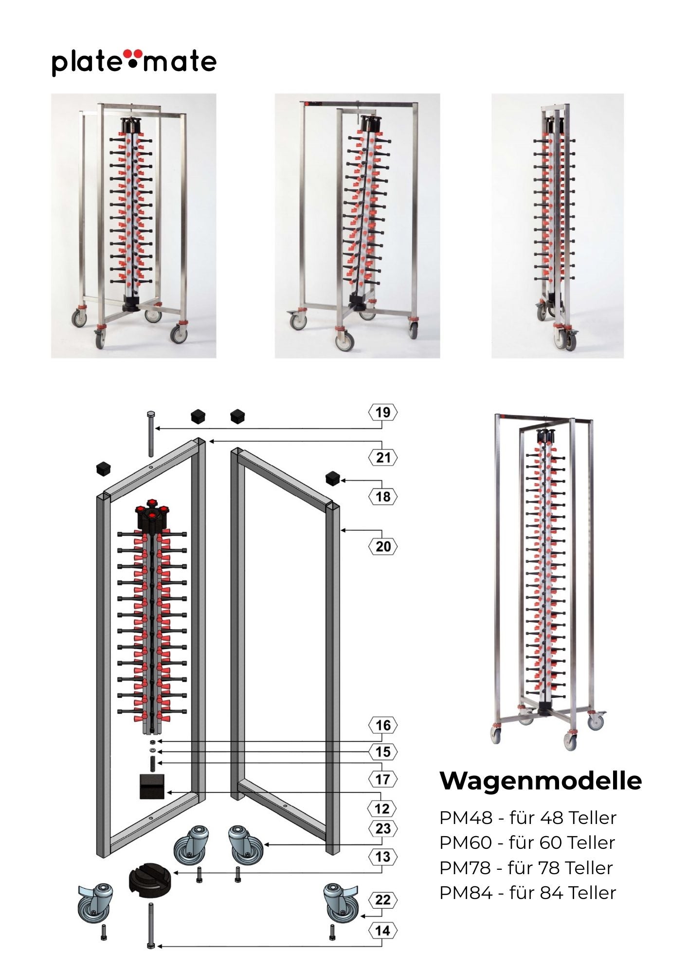 Hier finden Sie unsere Anleitungen, Ersatzteile und Explosionszeichnungen zu all unseren Plate Mate Produkten. Wir sind stolz darauf höchste Qualität bieten zu können. Doch kein Produkt ist 100% perfekt genauso wenig wie es in der Küche nicht immer fehlerfrei zu und her geht. Dafür bieten wir ein vollständiges Ersatzteilsortiment an, um das Leben Ihres Plate Mate Tellerstaplers zu verlängern und bei Bruch reparieren zu können.